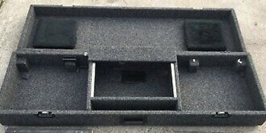 This Grundorf Carpet Series DJ coffin holds two 1200 style turntables (standard configuration) and one 19" mixer (up to 8 spaces).