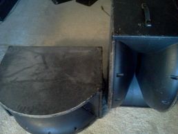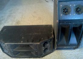 (2) Electro Voice Loud Speaker Mid-Range and High Frequency Horns Configurable passive crossover for bi-amp or full range. Aray arranged in Rear Loaded custom made enclosed cabinets .