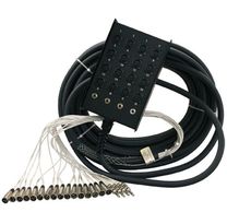 Each pair is individually jacketed and has a 100% foil shield. All nylon "D" series type connectors on a low-profile steel box with raised edges to protect the connectors. Channel number ID behind each connector. Nylon strain relief/grip on box of and metal mesh cable bale on fan end.