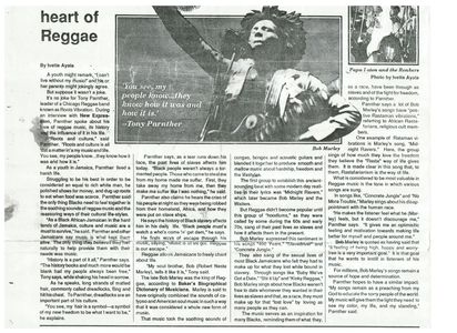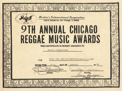 Roots Vibration Appeared on the stages of Chicago with an eruption of Roots Rockin' Reggae that rekindled the spirit of Bob Marley at a time when the DJ Toast Masters and Dancehall music was becoming popular.