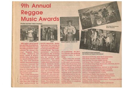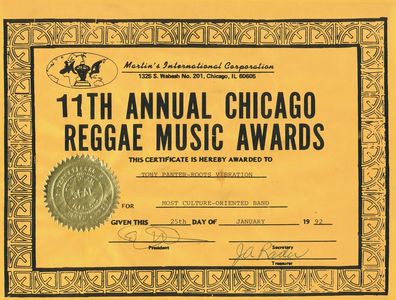 Winners of the January 25, 1992 Martin's International Corporation's 11th Annual Chicago Reggae Award