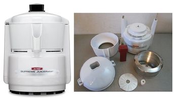 Stainless-steel blade and centrifugal force separate juice from pulp