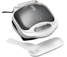 Great for grilling burgers, fish, vegetables Includes: dishwasher-safe plastic drip tray and spatula, Also includes bun warmer, Patented grill grooves let oil run off while food is cooking, Interior wipes clean easily