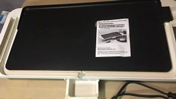 Flat top electric griddle. Easy to clean. Use indoor or outdoor. Perfect solution to a BBQ in an apartment or balcony.