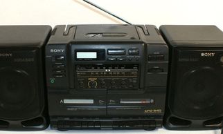 Retro Sony mega bass CFD-540 boombox. Detachable speakers, cd, am fm radio, duel cassette deck, one touch recording, high speed dubbing, headphone jack, plug in or use batteries,